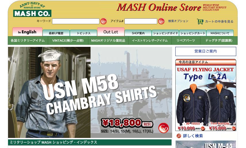 - ショップの概要と特徴 日本のミリタリーショップの草分け的な存在で、「聖地」とも呼ばれているそうです。上野のアメ横に実店舗があり、本格的なヴィンテージ品から気軽に試せるレプリカまで、その品揃えは圧巻。