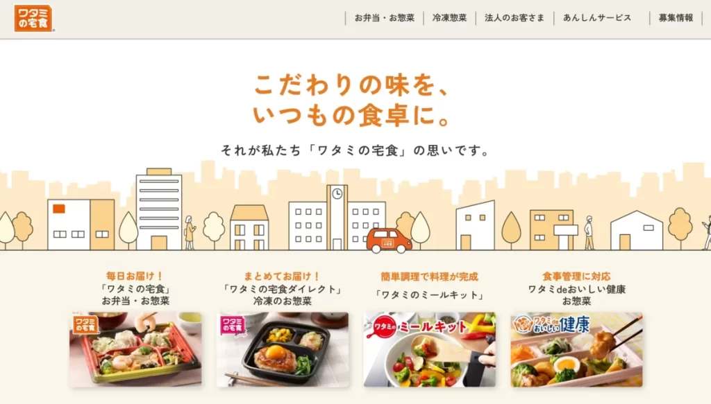 この表が示す通り、多くのサービスが「冷凍弁当」を「宅配便」で届ける中、「ワタミの宅食」は**「冷蔵の日替わり弁当」を「担当の方が毎日手渡し」**してくださる、非常に珍しいサービスです。
